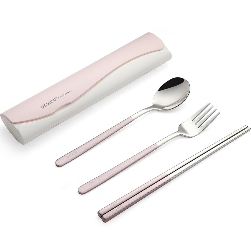 DEVICO Portable Travel Utensils with Case, Reusable Camping Silverware for Lunch, 18/8 Stainless Steel Cutlery Set (Pink)