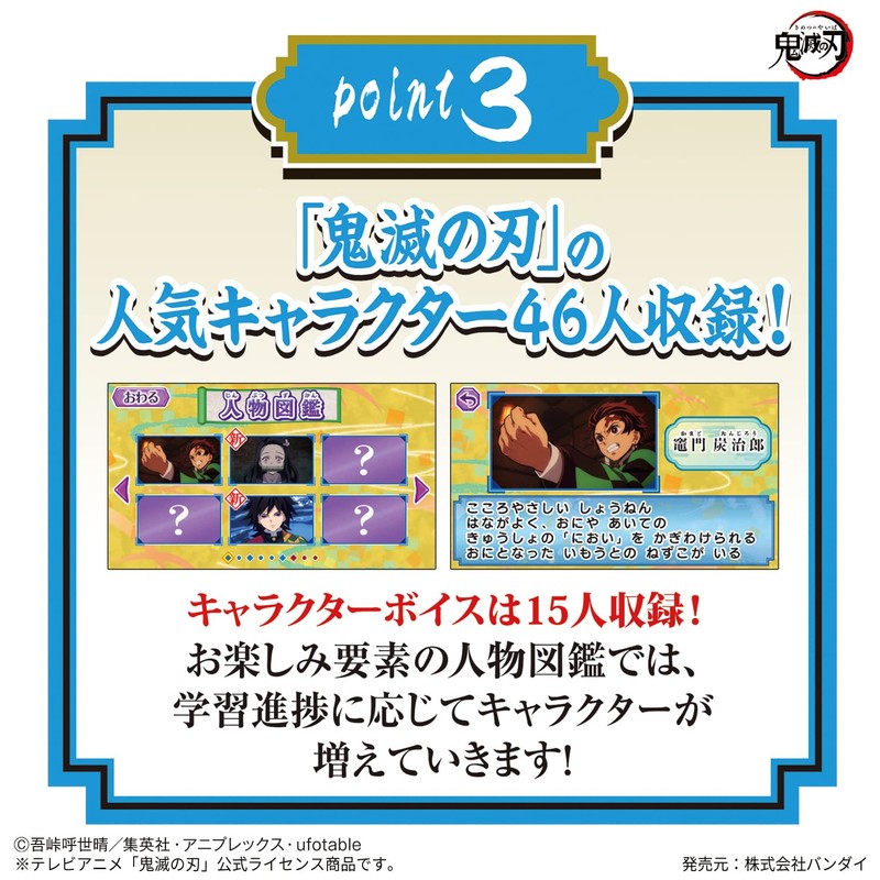 - It also includes a large number of character voices, so you can enjoy the world of the Demon Blade! This product can be played for a long period of time, from school preparation to middle school
