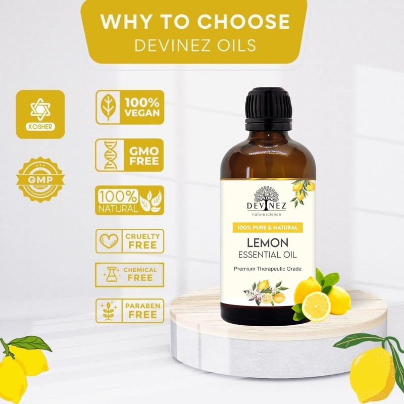 Devinez Lemon Essential Oil with Premium Dropper (30 ml/1 fl oz) - 100% Natural, Undiluted & Natural, for Hair Care, Scalp Massage & Skin Care, Diffuser, Aromatherapy, Humidifiers