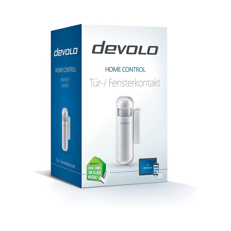 - Box contents: 1 x Devolo Home Control door/window contact, 1 x batteries, 1 x mounting material, 1 x installation manual (English language not guaranteed)
