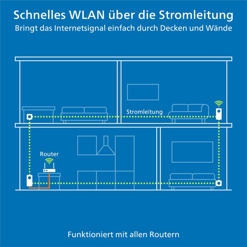 • Single adapter for optimal expansion: the world's fastest powerline adapter with up to 2400 Mbit / s directly over the power line, WLAN with up to 1200 Mbit / s for your entire home