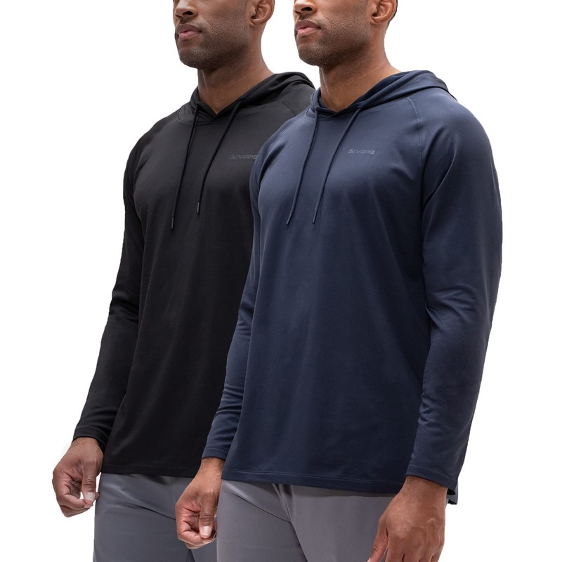 DEVOPS Men's Fleece Thermal Workout Hoodie (Black/Navy, 2X-Large)