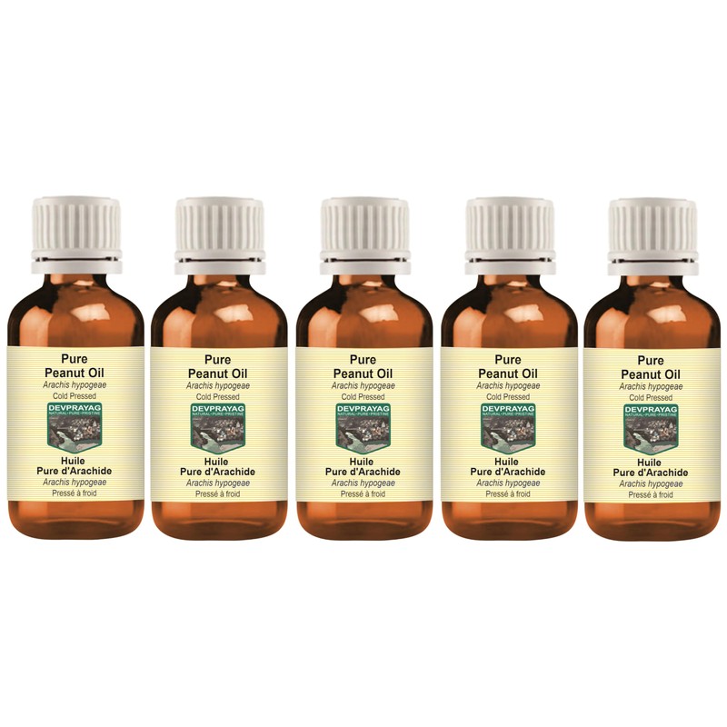 Devprayag Pure Peanut Oil (Arachis hypogeae) Natural Therapeutic Grade Cold Pressed (Pack of Five) 100ml x 5 (16.9 oz)