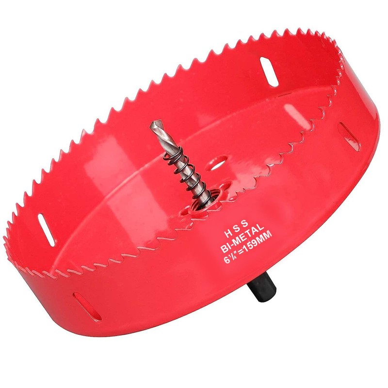 6-1/4" Hole Saw Heavy Duty Steel Design for Cutting Soft Metal, Iron, Wood, Drywall, Pipe, Plastic, Fibreboard, Red