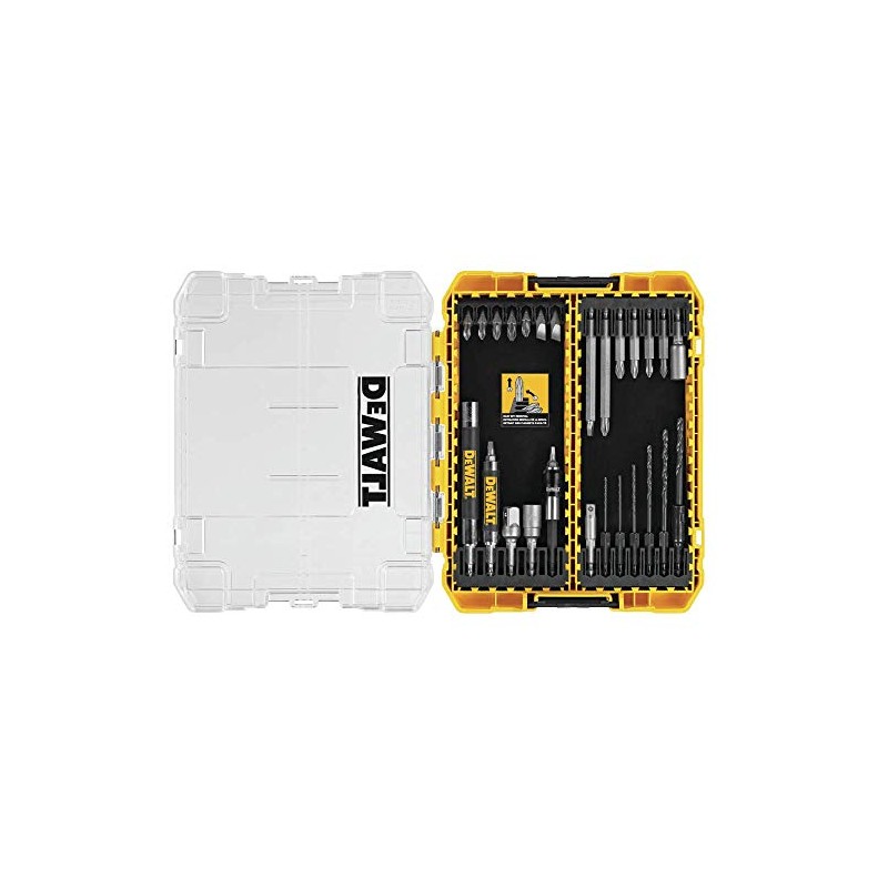 - DEWALT drill bit set comes with clear lid allowing you to easily see contents at glance