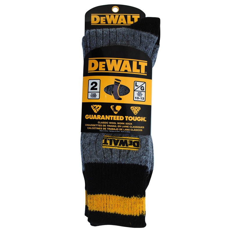 The DEWALT wool blend boot socks are made with a premium wool blend. These socks feature a carefully crafted blend of materials, including 26.5% wool, 48% polyester, and 23.8% acrylic. These warm socks for men offer superior warmth and moisture-wicking properties. The polyester and nylon blend enhances durability to make these crew socks capable of withstanding the toughest wear and tear. It ensures your feet stay dry and comfortable all day long. The reinforced cushioned heel provides essential support and protection to minimize fatigue and strain. The waterproof yarn and reinforced toe area provide long-lasting durability and prevent holes and tears. These winter socks offer additional coverage and warmth to make them ideal during harsh weather conditions.