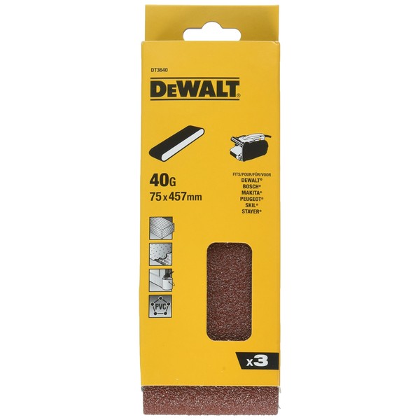 Dewalt Sanding Belts, 75 x 457mm, Grit Size 40, Pack QTY 3 DT3640-QZ