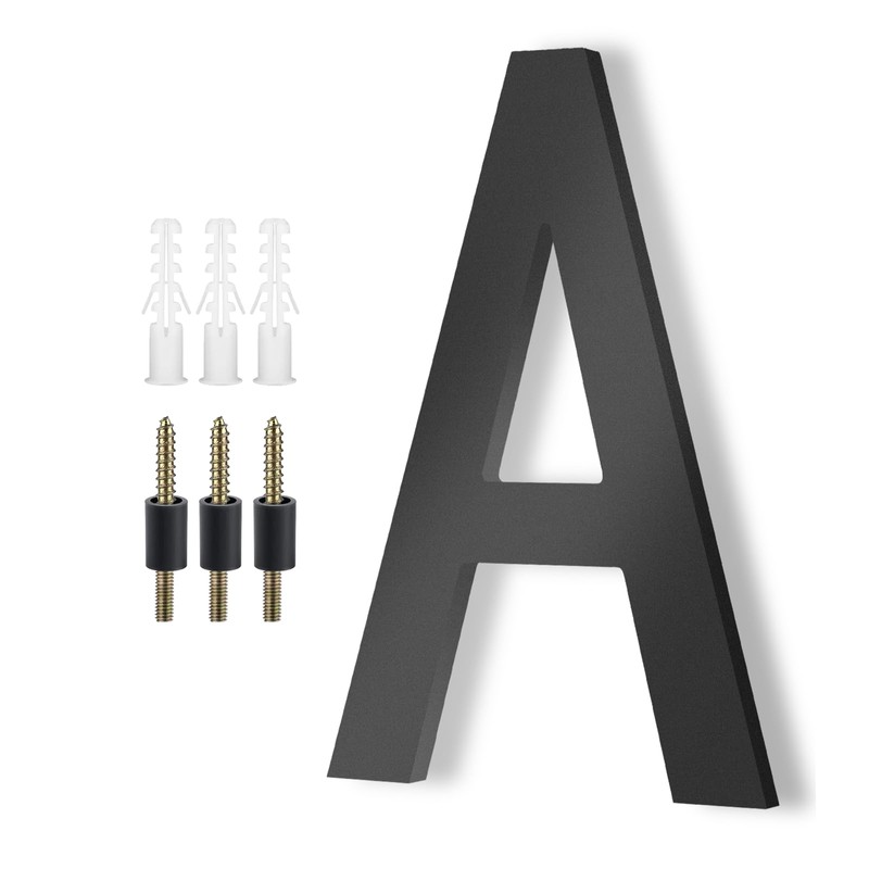 DEWEL House Letters for Outside, Large Floating Modern House Address Letter 8 Inch with Nail Kits for 911 Visibility Signage and Outside Decor, Black (Letter A)