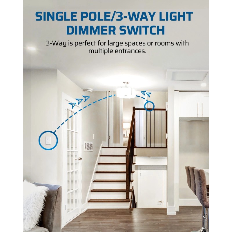 - [Easy to Install] No neutral wire required, available with single pole or 3-way wiring; control the lights from one or two locations, Note: install only one light switch dimmer in a 3-way circuit