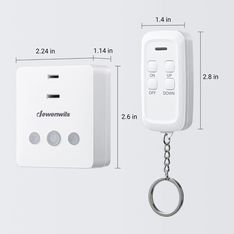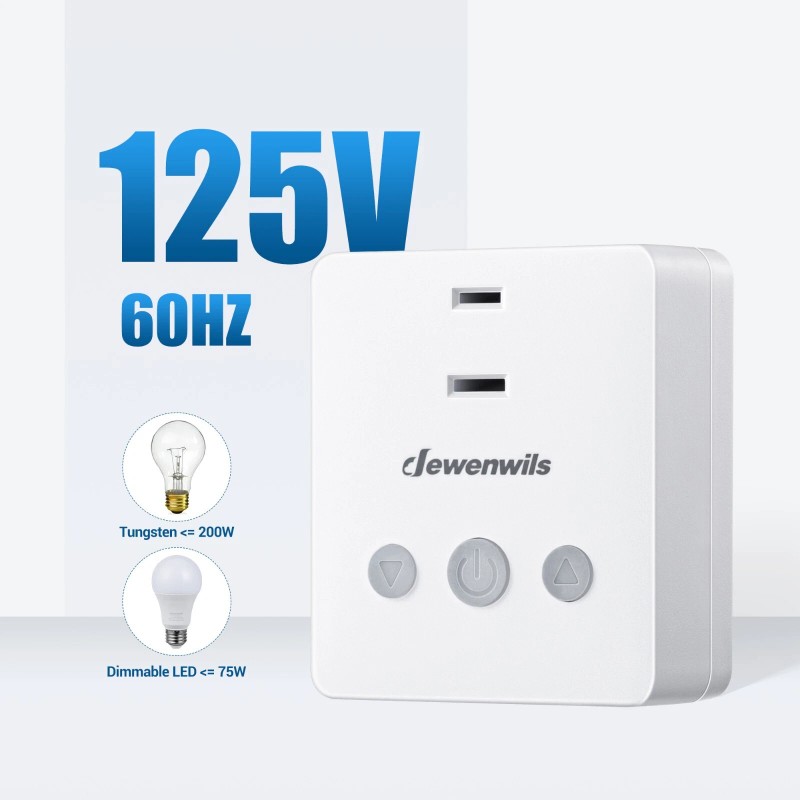 Two operation modesThe strong RF signal works through walls and doors. Control your lights at the touch of a button. 100FT remote control range gives your more flexibility. You could control it with the buttons on the dimmer switch as well. | Durable PartsEquipped with a 2-prong plug, 1 grounded outlet, and durable PC materials, this dimmer offers high quality for you to use indoors. | Ease Your LifeNo complicated setting up and programming needed, do not need to worry about the strength of the WIFI signal. Perfect for the elderly, pregnant women, and those with limited mobility or back pain; make your life convenient, safer, and energy-efficient. |