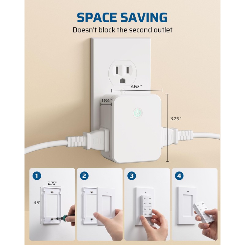- [Flexible Magnetic Remote Control] Remote outlet switch features a magnetic design with a detachable base, allowing it to function as both a fixed wall switch and a handheld remote; The outlet timer remote offers flexible operation for different usage habits, enhancing daily convenience