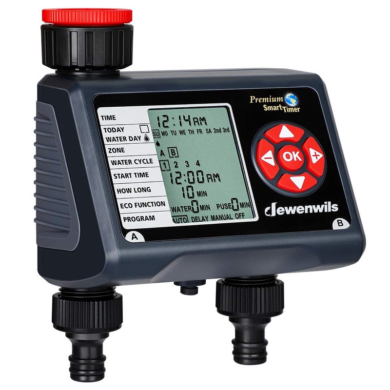DEWENWILS Irrigation Computer, 2 Outputs, 4 Irrigation Programmes for Each Zone, Garden Watering Timer, Automatic Watering Timer with Rain Delayed/Manual/Automatic Mode