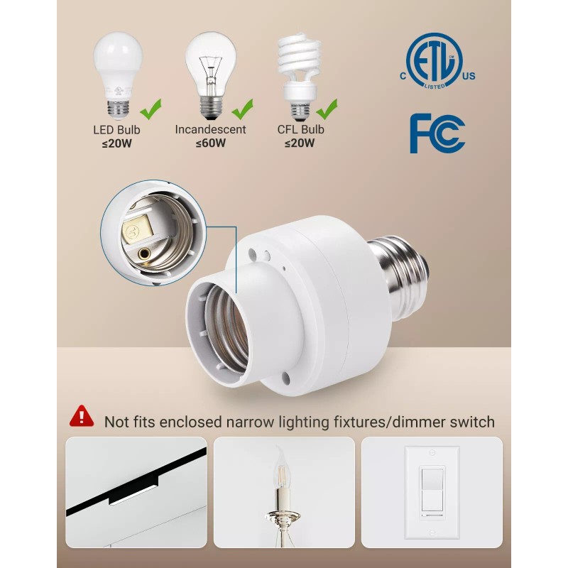 Dewenwils Wireless Remote Control Bulb Socket Set, No Wiring Needed