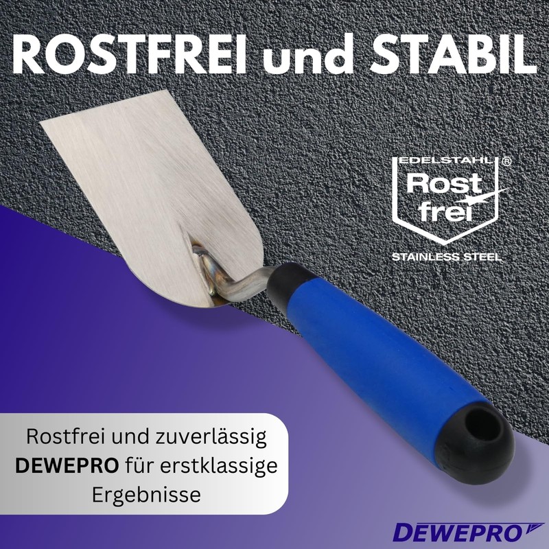 - Designed for the highest demands of craftsmen and DIY enthusiasts, the DEWEPRO cleaning trowel impresses with its combination of robustness, durability and ergonomic design. Whether plastering, plastering or precise application of mortar, this trowel is the perfect tool for any construction site.