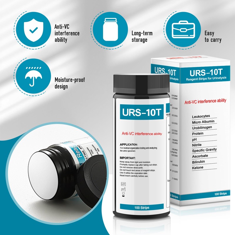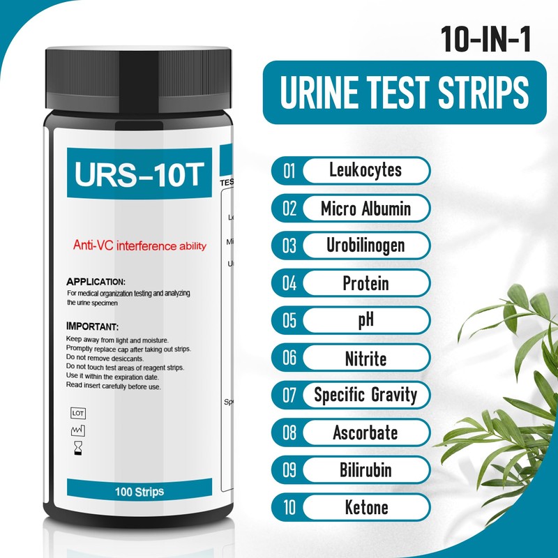 - ????URS 10-in-1 Urine Test Strips This urine test strips can detects and measures 10 key parameters including WBC, nitrite, urine proteinogen, protein, pH, microalbumin, specific gravity, ketone bodies, bilirubin, ascorbic acid in urine for a thorough assessment of overall health and wellness.A total of 100 test strips in uti test strips, the most cost-effective way to monitor your health at home.
