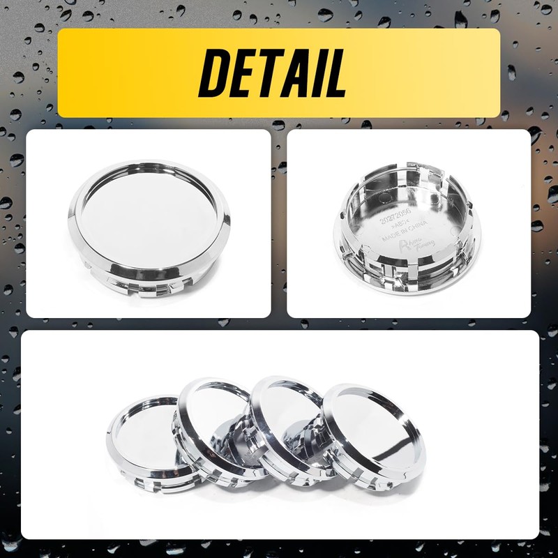 - Materials: The hubcap is made of abs plastic. Features scratch resistance durability and delicate touch. The simple style of the Chrome hub center cap can inject the soul of fashion and personality into your hub making your car more beautiful and eye-catching