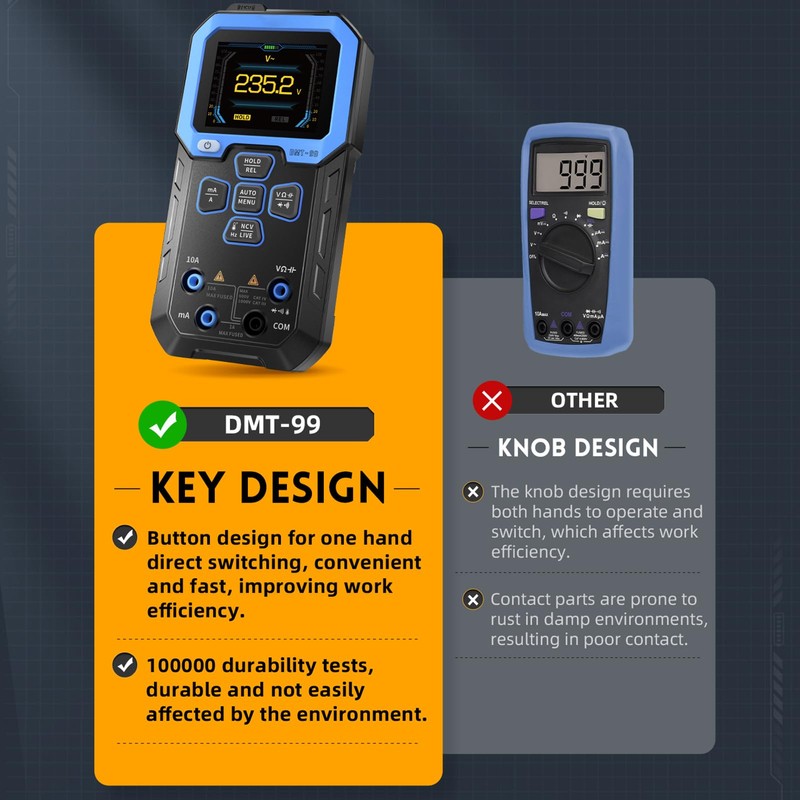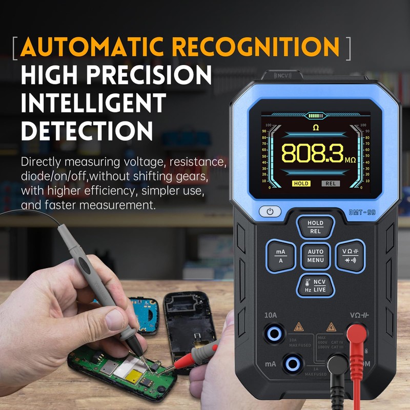 DewinLVD Digital Multimeter, Multifunctional Multimeter, Intelligent Voltmeter, 10,000 Counter, Automatic Diagnostics, Voltage Tester, Measures AC/DC Voltage Resistance, (DMT-99)