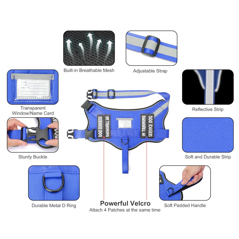 - DOG HARNESS SET: This dog harness comes with a service dog harness, a 5-feet dog leash, and 10 detachable velcro patches such as "DO NOT PET", "IN TRAINING", "BEST FRIEND", "SERVICE DOG", and "EMOTIONAL SUPPORT". To showcase your dog's personality and emotions