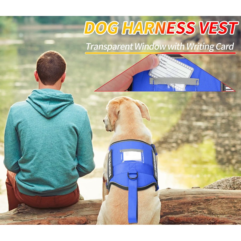 - WITH CARD WINDOW: The surface design of this dog harness has a transparent card small window, which comes with a business card that can write information, you can customize personal information for your dog including name, contact number, personality, etc., so that your dog is more independent, to prevent the dog from being lost and cannot be retrieved