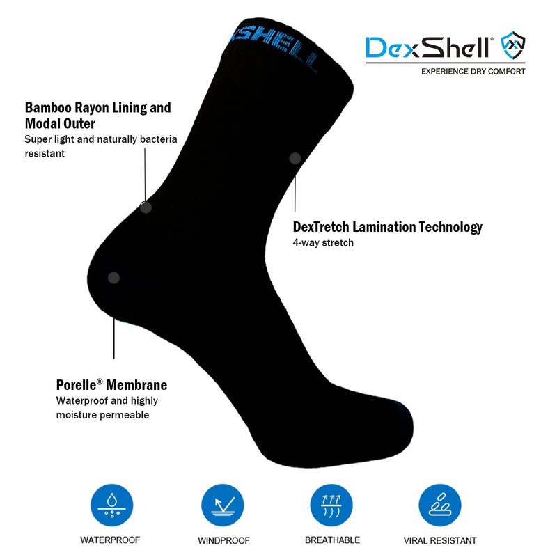 Dexshell Crew Socks DS683 BLK Ultra Thin Crew Black Medium (9.5-10.2 inches)