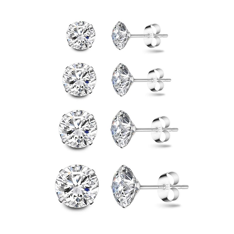- 4 Pairs Stud Earrings: You will Receive 4 Pairs Silver Stud Earrings in Different Sizes: 3 / 4 / 5 / 6mm. Small Silver Stud Earrings come with 4 Pairs 925 Sterling Silver Butterfly Earring Backs. Sterling Silver Stud Earrings are sturdy and securely closed with Silver Butterfly Backs. So you don't have to worry about losing your earrings. 4 Pairs Unisex Cartilage Stud Earrings Set is enough for you to share your Family & Friends. Suitable for Women, Men, Girls, Boys & Children.