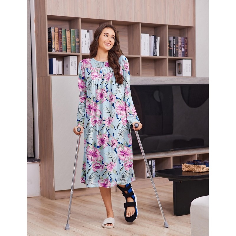 - đăDesigned for ComfortăThe comfort-focused design of this adaptive clothing is suitable for all women, from petite to plus size. These house dresses and post-surgery nightgowns provide unparalleled comfort, transition from indoors to outdoors without worrying about inadequate coverage.