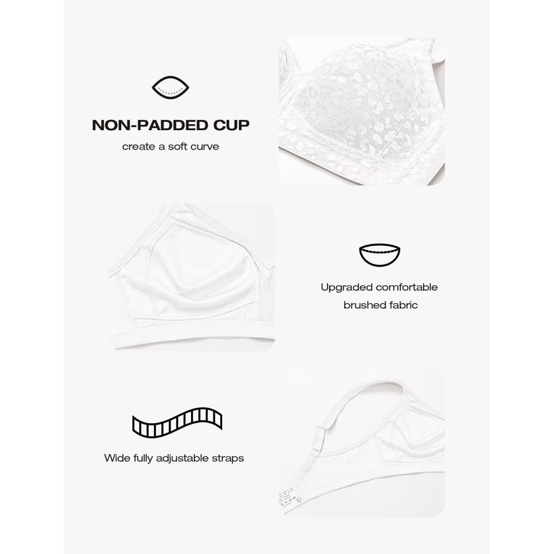 Deyllo women plus size underwire lace bra, made of exquisite eyelash lace, showing a cute appearance. Wider elastic back band smoothes the back fat, and the underwire brings comfortable support. Wearing Deyllo's lace bra, big girls can also enjoy sexy and comfortable.