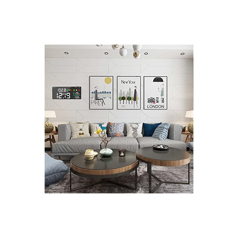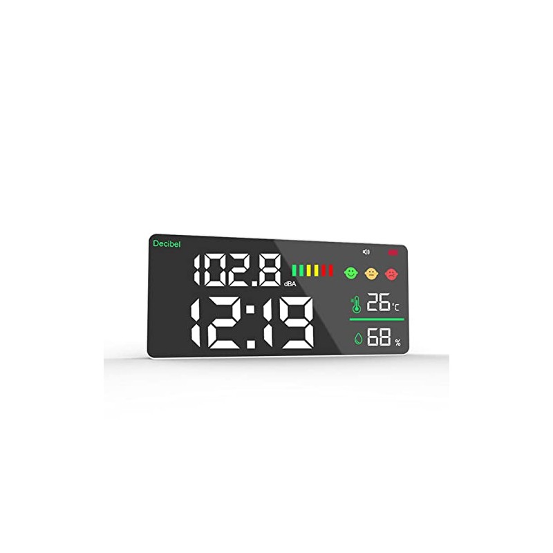 Dezibel Meter with Alarm, 11 Inch LED Sound Level Meter with Temperature Humidity + Clock dB Meter, 4-in-1 Noise Level Meter for Studio Home Office