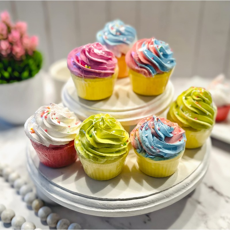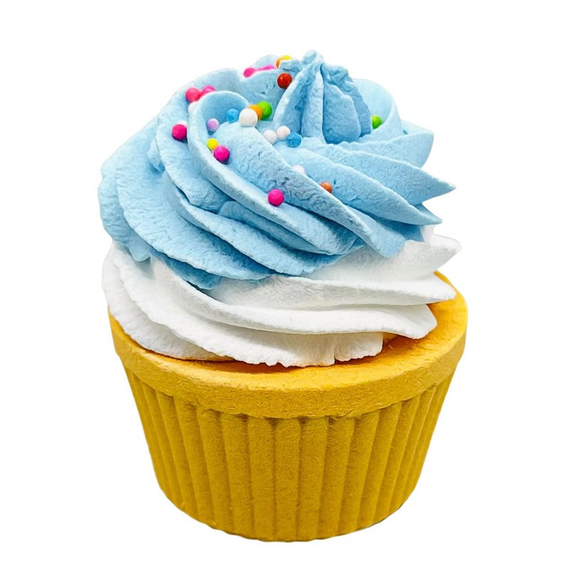 Dezicakes Cupcake Fizzy Organic Bath Bomb for Women- Blue & White Cupcake