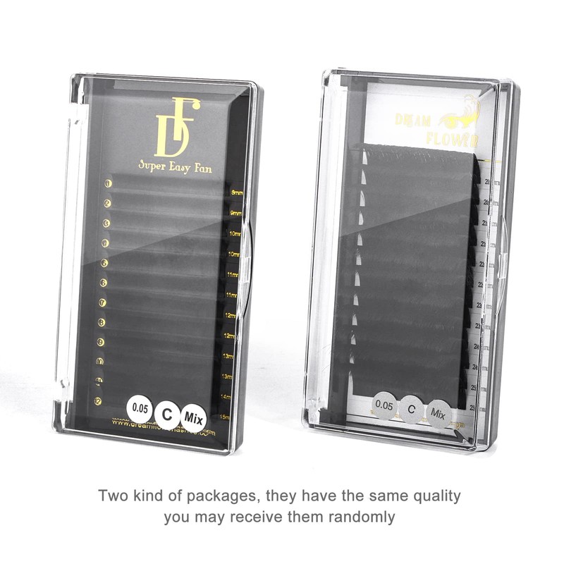 - 【Super Easy Fan】DF super easy fan eyelash extensions are denser than normal easy fan, 1 super easy fan =2 normal easy fan = 4 volume lashes. They are sticky bases with double layers auto fan lashes. Your clients can get a more fluffy and charming look.