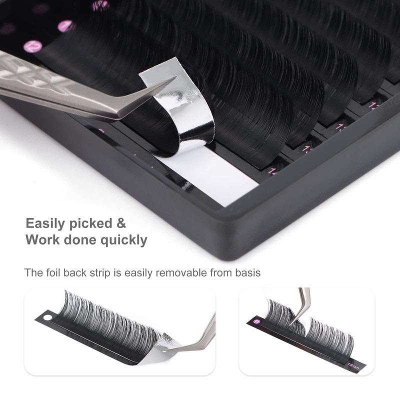 - No Glue Residue: The single eyelashes sit on a specially designed glue strip, leaving no residue and no kinks, the lash extensions are easy to peel off. All come with a foil back, and the foil strips are easy to remove from the base. The strip is also removable and waterproof.