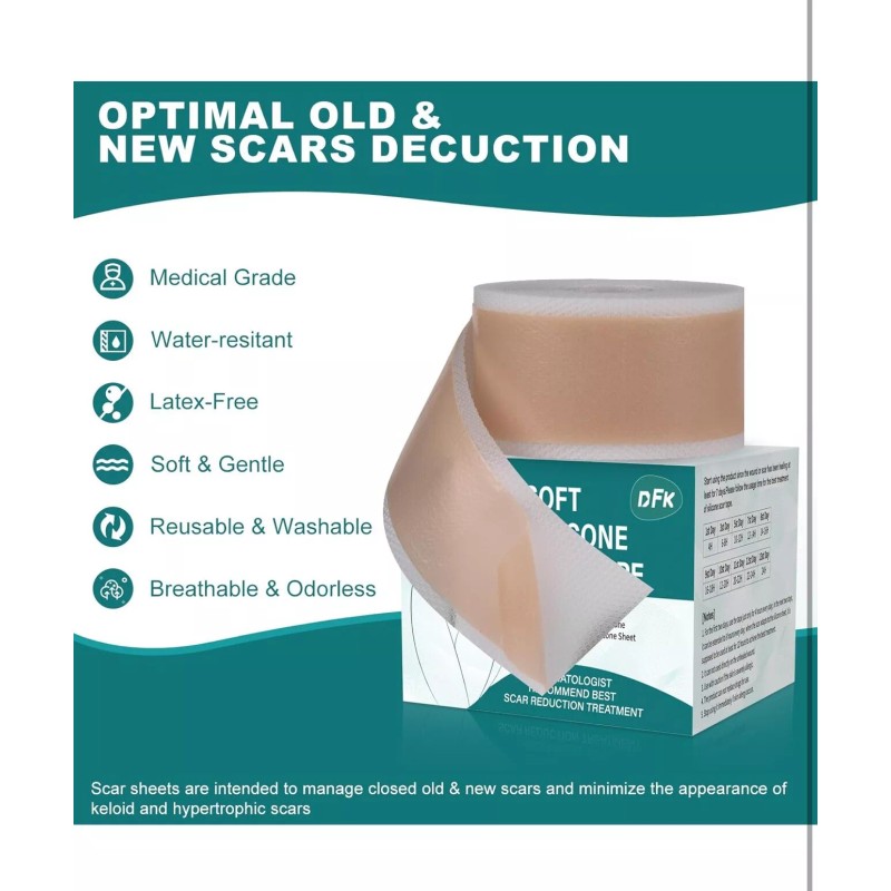 Silicone Scar Sheets, Silicone Scar Tape(1.6"x 118" Roll-3M), Reusable Professional Scar Silicone Strips, Soft Silicone Scar Sheets for Surgical Scars,Keloid,Acne Scars,Burn Scar,C-Section