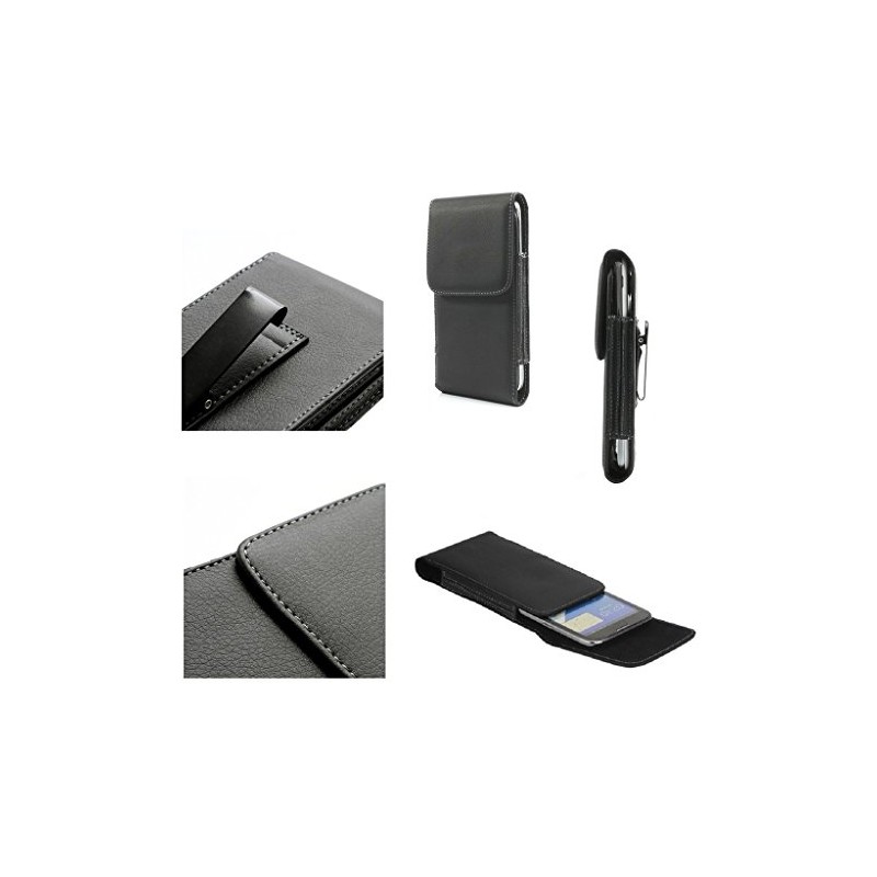 DFV mobile - Leather Flip Belt Clip Metal Case Holster Vertical for Micromax A111 Canvas Doodle - Black