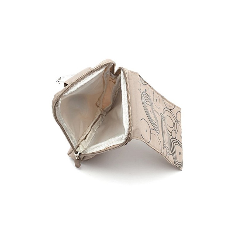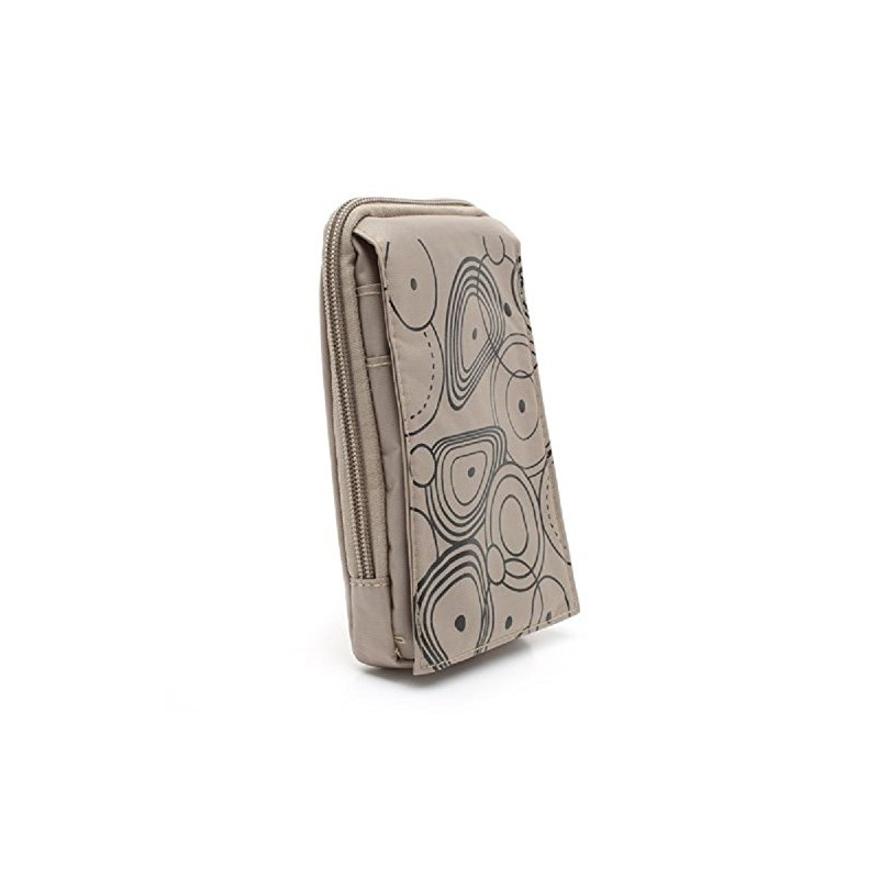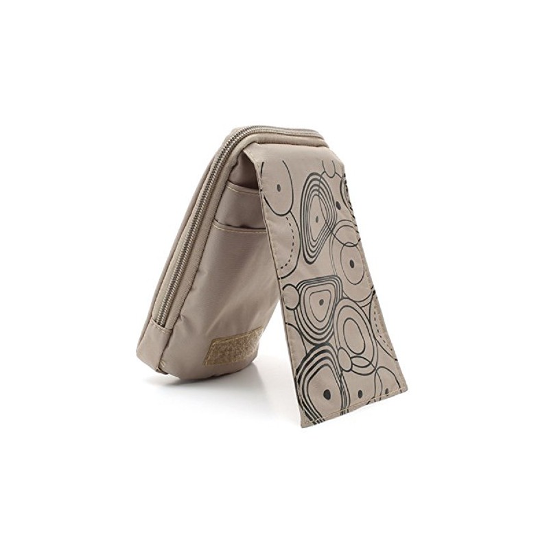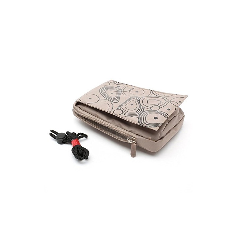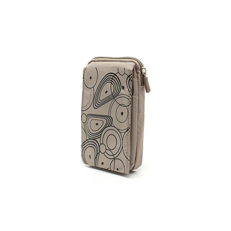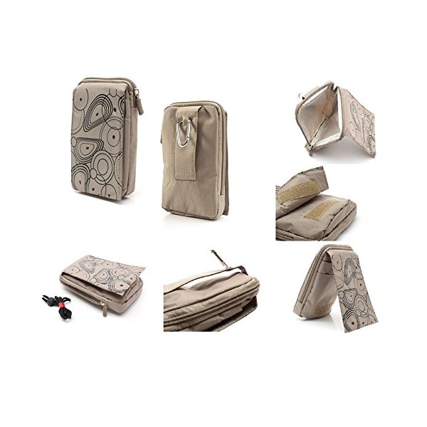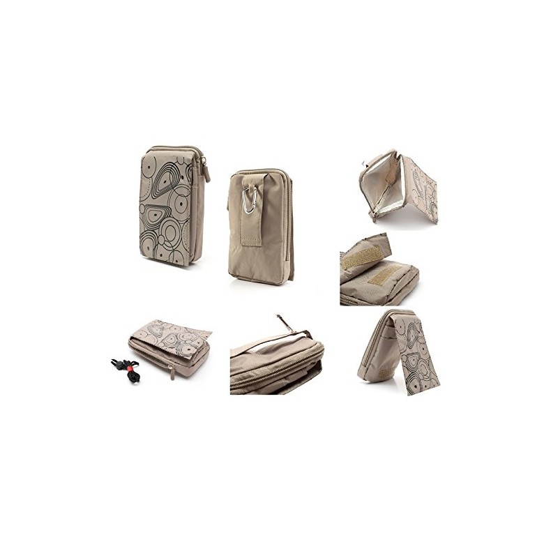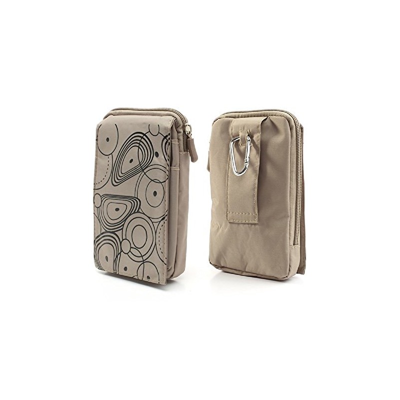 DFV mobile - Multi-functional Vertical Stripes Pouch Bag Case Zipper Closing Carabiner for Obi Yeti S500 - BEIGE (16 x 9.5 cm)