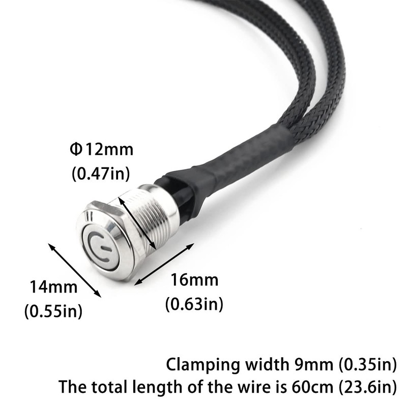 - Mounting hole size of 12mm; The cable length is 60cm (23.6in), please check if it is suitable before use.