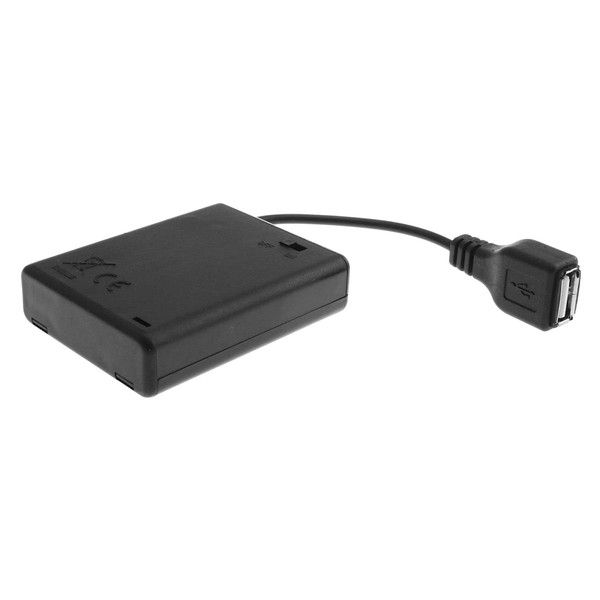 DGZZI Battery Case USB Female Socket 4 AAA Battery Case Box Holder with ON-Off Switch Black