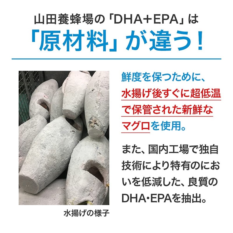また、国内工場で独自の技術により特有のにおいを低減した、良質のDHA・EPAを抽出しております。