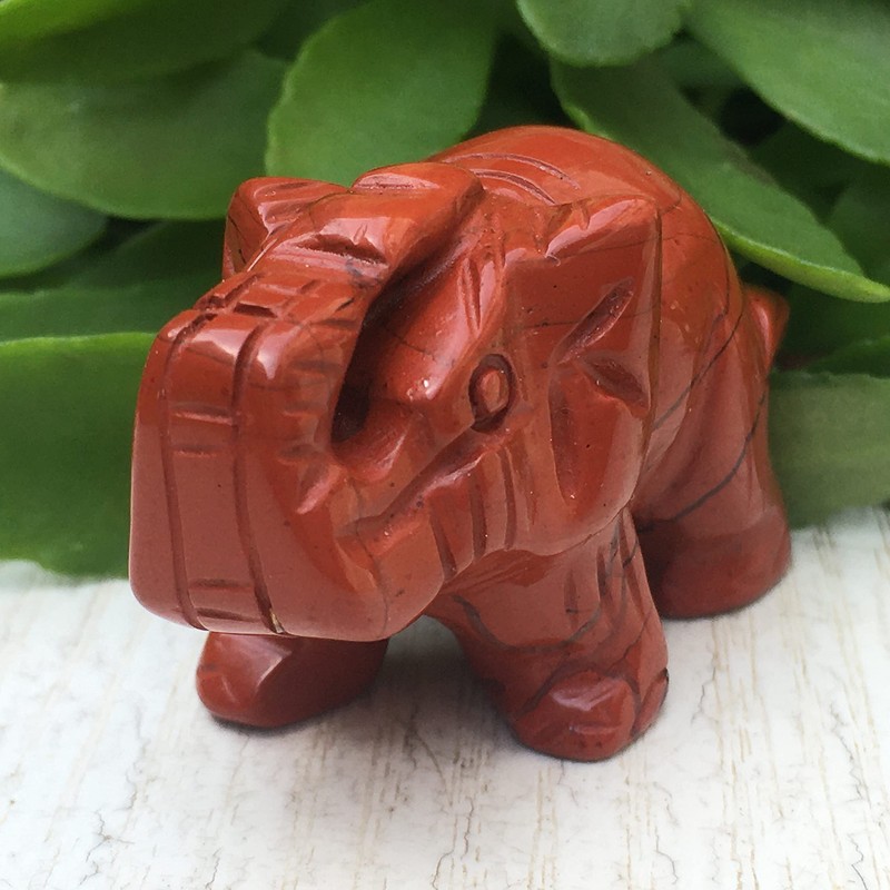DHRWGEM 1.5" Natural Quartz Crystal Red Jasper Hade Carved Elephant Reiki Healing (Red Jasper)