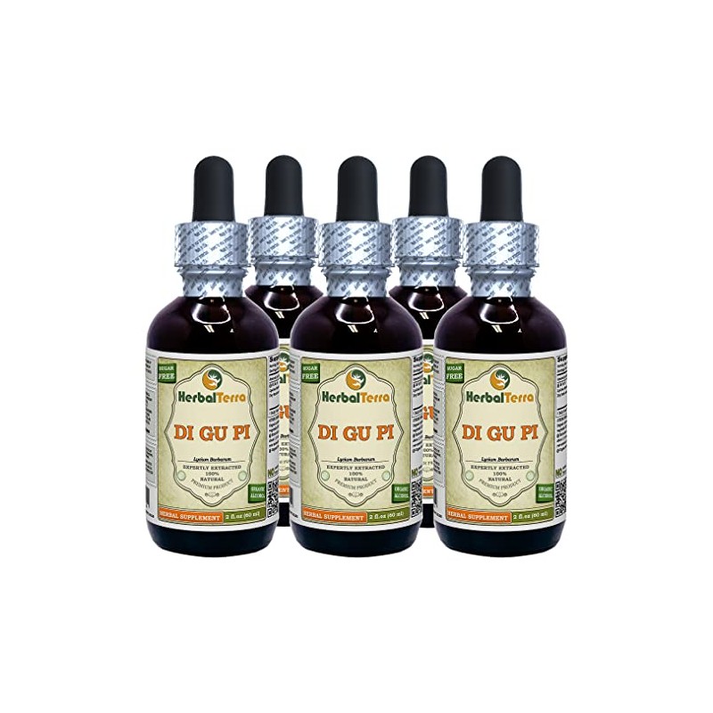 Di Gu Pi, Lycium (Lycium Barbarum) Tincture, Dried Bark Liquid Extract (Brand name: HerbalTerra, Proudly made in USA) 5x2 fl.oz (5x60 ml)