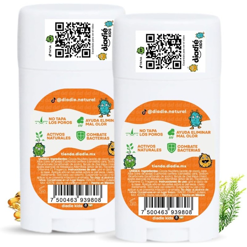 El desodorante infantil DIADIE KIDS ha sido diseñado especialmente para niños y niñas de entre 8 y 12 años, ofreciendo protección contra el mal olor de forma segura y natural, sin bloquear la transpiración de la piel.