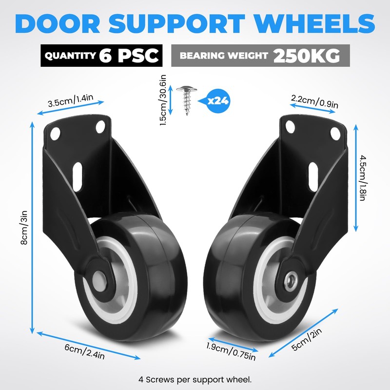 - Anti-sagging: Side mount caster wheels newly upgraded, immediately repair door sagging, adjust the height of the door seam, reduce the impact of the door and the floor, protect your floor from scratches, stains or damage