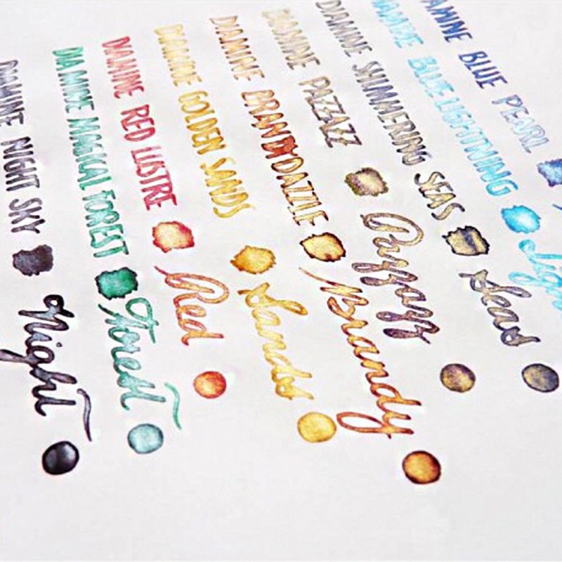 Diamine - Shimmering Fountain Pen Ink, Shimmering Seas 50ml Manufacturing since 1864, Diamine Inks relocated to a specially for this purpose built 'state of the art' factory in Liverpool in 1925 and later close to the world famous Aintree racing course. Even troughout all transition the Diamine trade mark and it's production methods survived, symbolising the finest quality of fountain pen inks, calligraphy/drawing ink and stamp pads. Due to the very fine quality Diamine fountain pen inks are suitable for all brands of pen. Suitable for fountain pens and penholders. Fountain pens using cartridges can be equipped with converters. Color: Shimmering Seas Content: 50ml