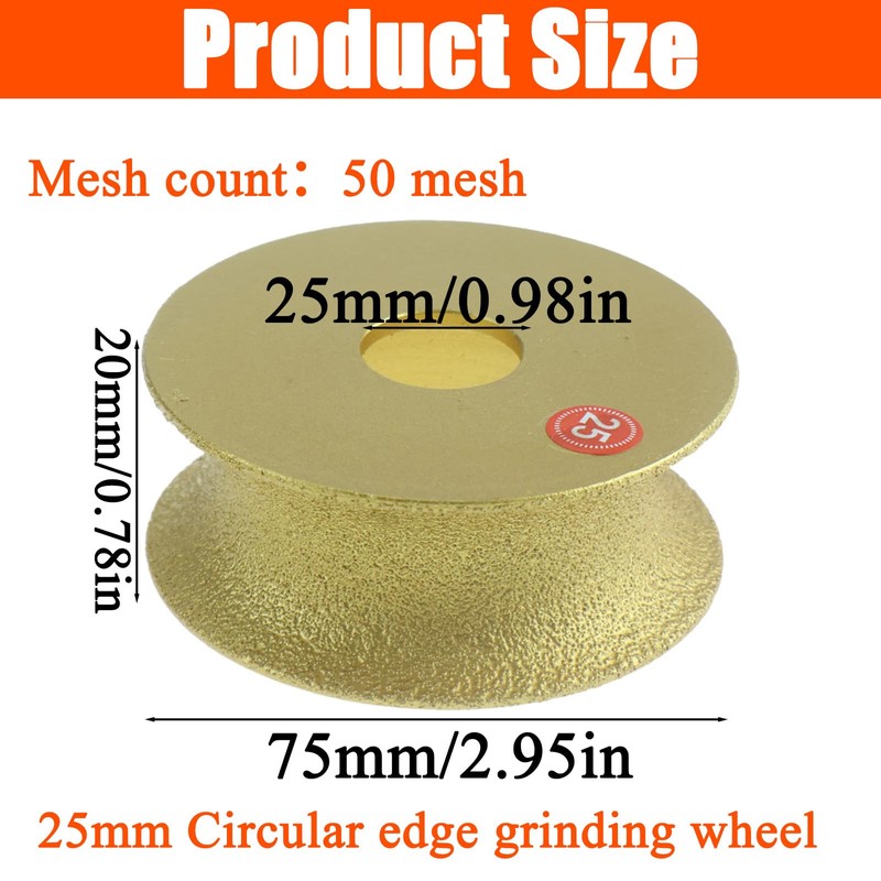 • PACKAGING INCLUDES - You will receive 1pcs diamond bullnose grinding. diamond grinding wheel has an outer diameter of 7.3 cm/2.87 inches and a hole diameter of 2 cm/0.79 inches, 25mm Wheel Tool heights.
