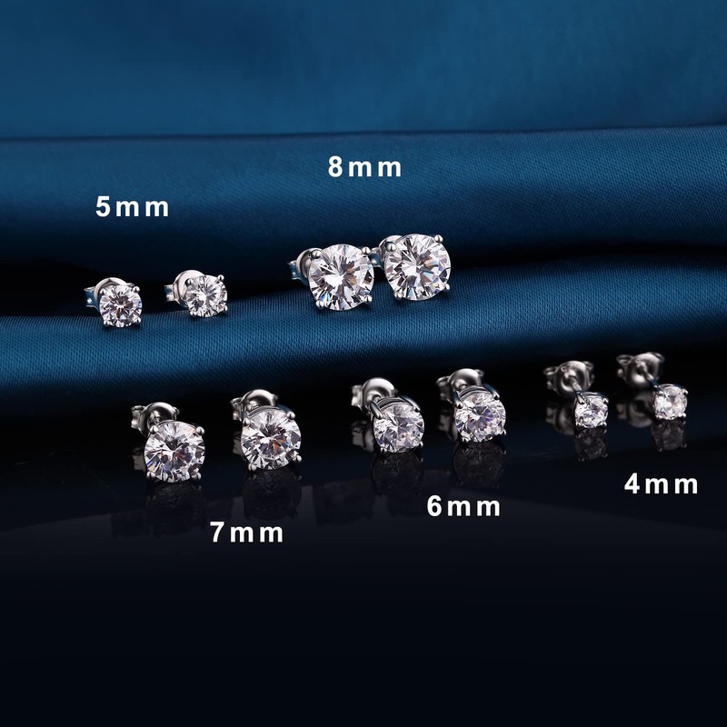 - ❤.【Stud Earrings】CZ Diamond Earrings Sets From 4mm to 8mm. 18K White Gold Plated Sparkling Simulated Diamond Stud Earrings. Handpicked 5A+ Top-Level Cubic Zirconia. Sparkle and Attractive Among People.