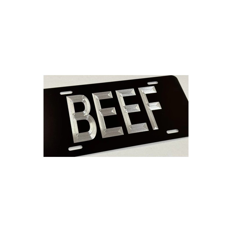 Diamond Etched Products 🔥REFLECTIVE🔥 Diamond Etched Engraved BEEF Car Tag Front Vanity License Plate