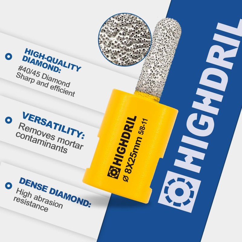 Diamond Mortar Raking Bit,HIGHDRIL 5/16" x 1" (8mm x 25mm) 5/8-11 Thread Diamond Mortar Router for Old Mortar,Blown,Damaged Bricks or Natural Stone Removal