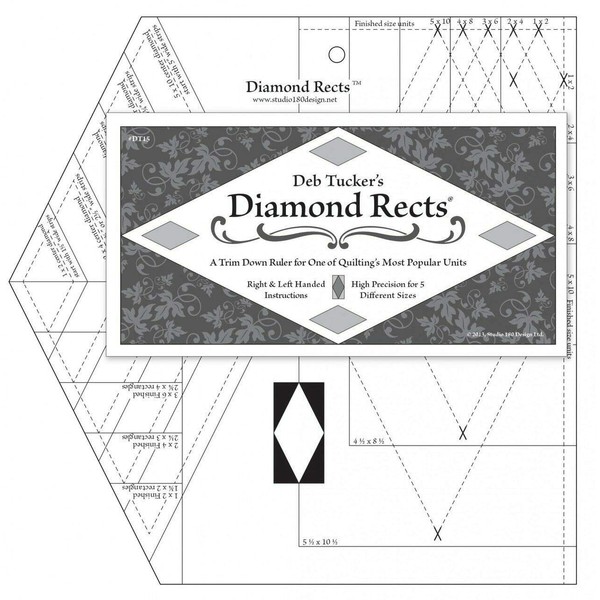 Now you can make those tough elongated diamond units needed for any Storm at Sea project with ease and success. But remember, this is a basic unit that can combine with any of the other fundamental units to create many, many other interesting designs and quilt projects. Youll precision cut the center diamond, then sew on side triangles to create an oversized unit that youll trim down to the perfect size. Make diamond units from 1" x 2" - 5" x 10".