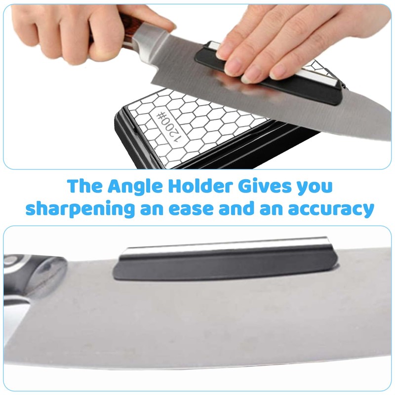 - Ease of Use: Knife sharpening angle guide 15 degrees. Attach the angle guide to the knife in the proper position. Hold the handle and back of the knife with both hands, with the ceramic part touching the surface of the sharpening stone or diamond, to fix the angle and move the knife back and forth on the sharpener.