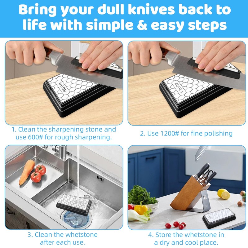 Packaging includes:1 x Diamond sharpening stones (600 Grit / 1200 Grit)