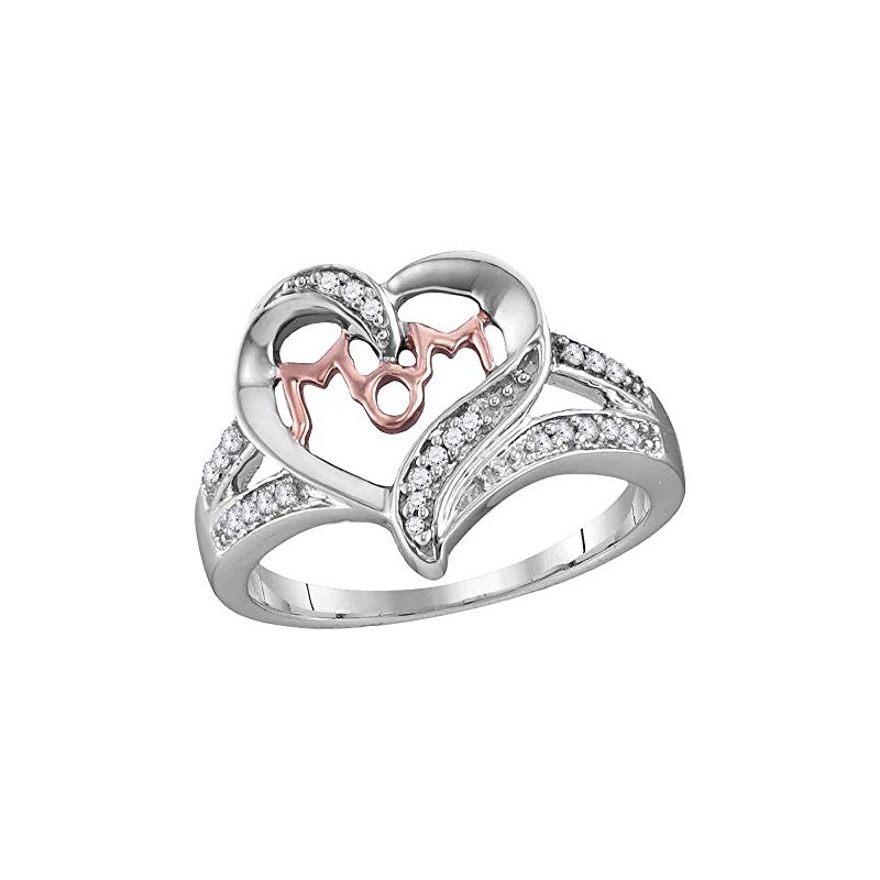 Diamond Solid 925 Sterling Silver Ladies Mom Mother Heart Unique Design Ring Band 1/10 Ctw. (.10 Ctw.) - Size 5